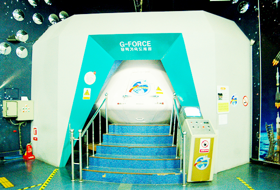 본 체험 기구는 일반인들과 어린이들이 경험할 수 있도록 축소 제작되어 1.5배인 1.5G까지 느낄 수 있으며, 만약 본인의 몸무게가 100kg이라면 우주인들은 150kg을 느낄 수 있습니다. 이로 인하여 멀미와 어지러움 등이 발생될 수 있습니다.