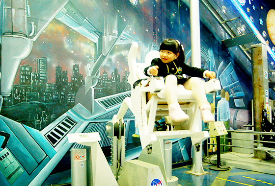 우주인들이 실제 우주공간에 나가 작업할 때 이용되는 우주 유영 장치로 우주에서 쉽게 움직일 수 있도록 해줍니다. 1명씩 앉아 조종하는 형태로 양쪽 조이스틱으로 상하좌우를 마음껏 조종해 볼 수 있습니다.